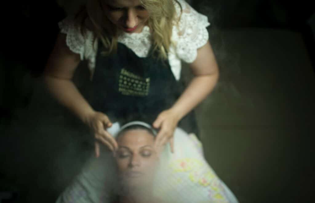 - Risciacqua il viso con acqua tiepida e asciugalo tamponando delicatamente. Evita di strofinare la pelle con il telo.